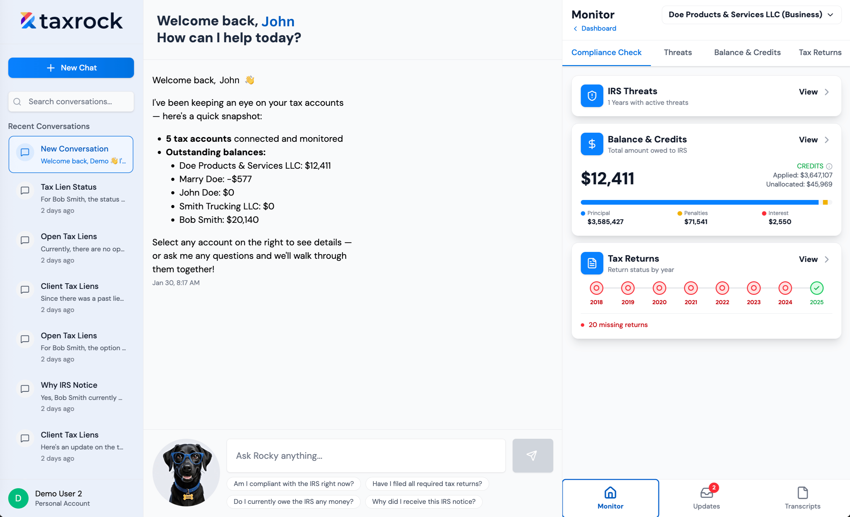 Get insights from Rocky, grounded in real IRS data
