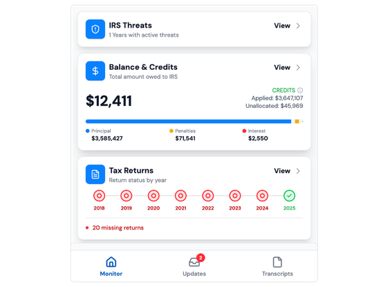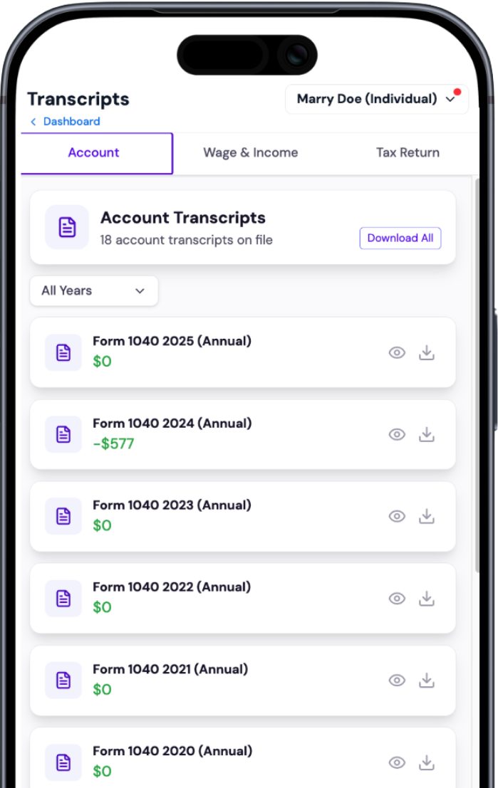 Always-current IRS data, synced automatically.